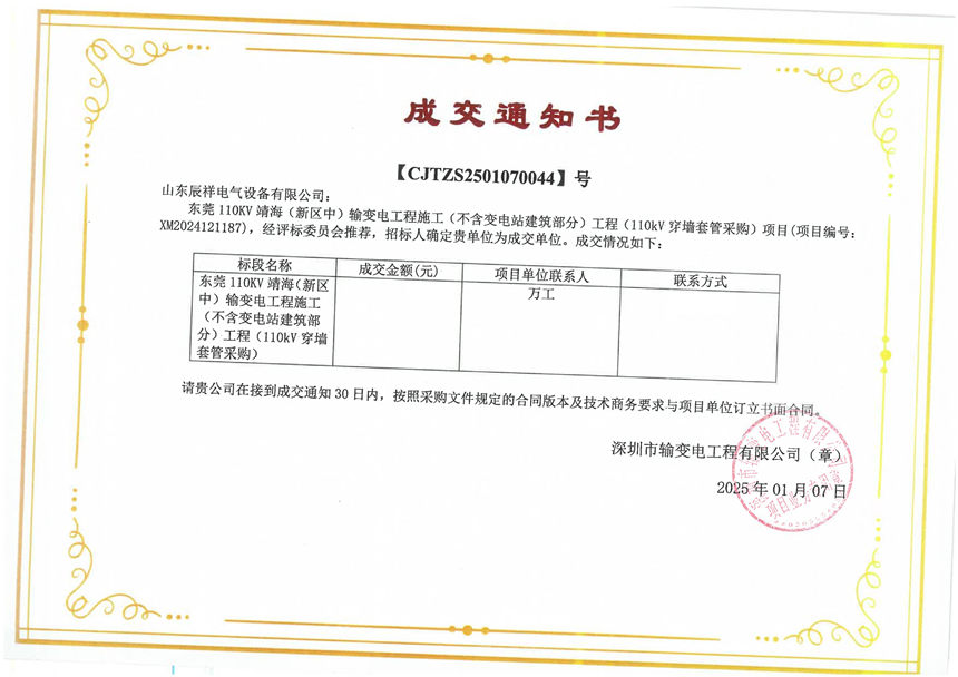 • 2025.01.03 交流穿墻套管中標(biāo)通知書